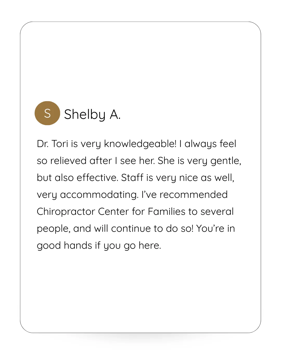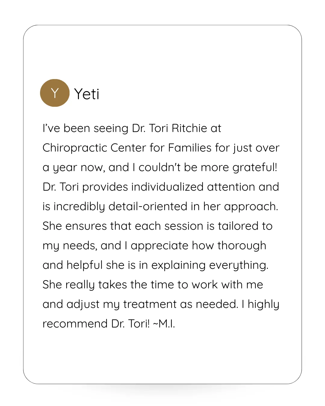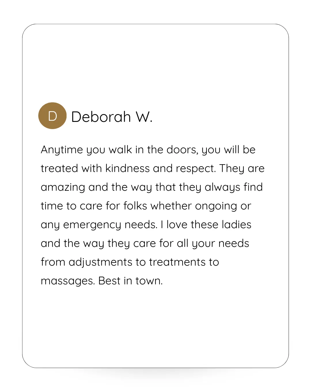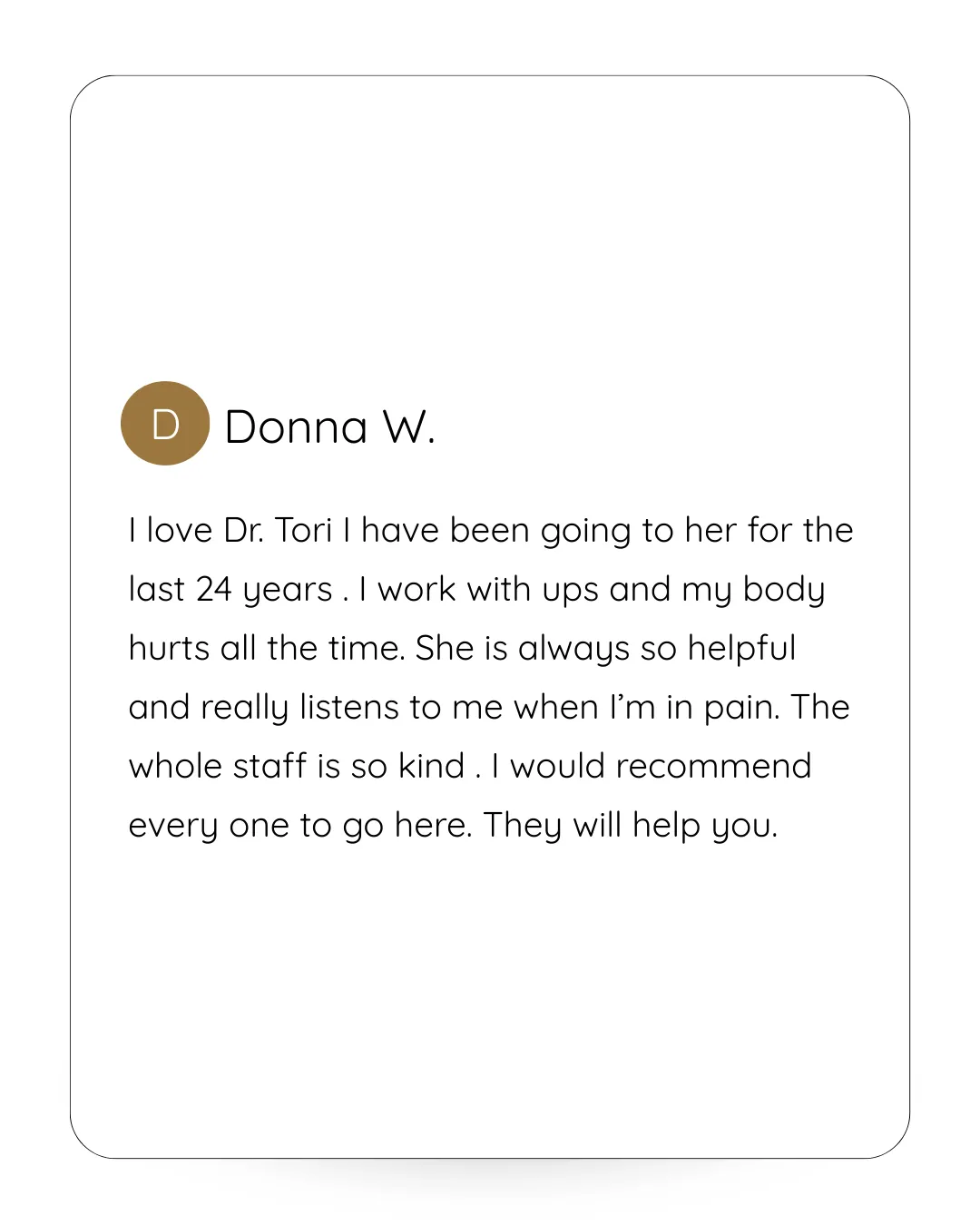 Your first visit is thorough but efficient. We’ll review your health history, assess your movement and nervous system, and talk through your goals so we can create a personalized care plan. You’ll have time to ask questions and feel fully comfortable before starting care. We want you to feel informed, supported, and confident every step of the way.